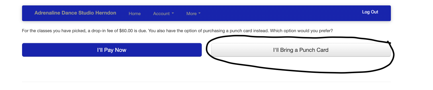 For example, if you are attempting to register for three classes with a Punch Card or Paying as you go: